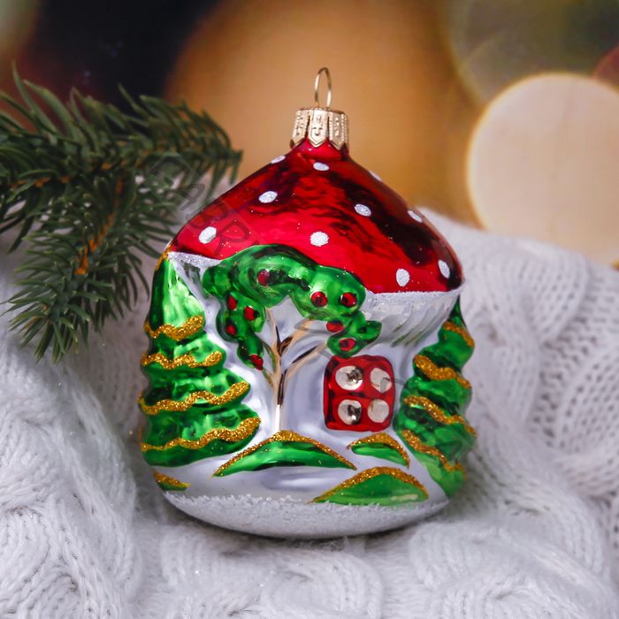 Ёлочная игрушка «Домик», ручная работа, d=7.4 см