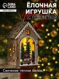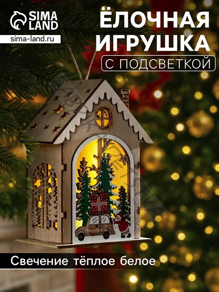 Ёлочная игрушка «Домик с Дедом Морозом и машиной», 8.2х4.2х7.3 см, от батареек, свечение тёплое белое