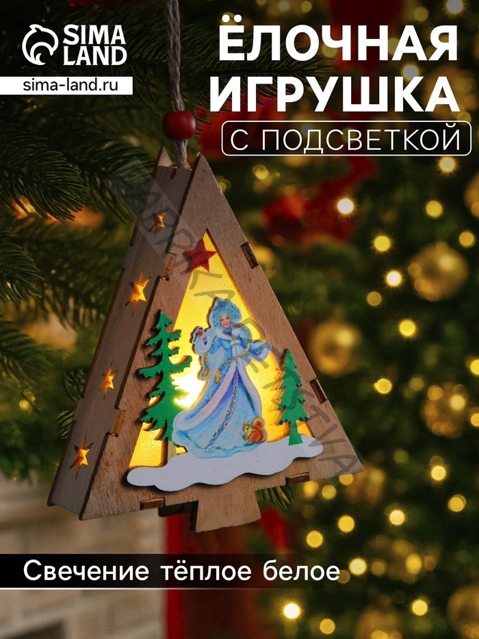 Ёлочная игрушка «Ёлочка со Снегурочкой», 12х10х3 см, 1 LED, от батареек, свечение тёплое белое