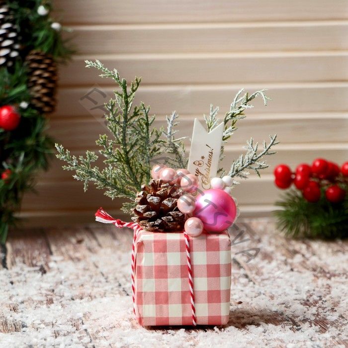 Ёлочная игрушка «Новогодний подарок» 9x11 см, розовый