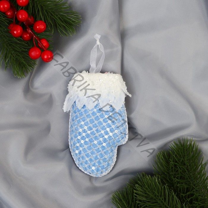 Ёлочная игрушка «Рукавица элит» 7x12 см, бело-голубой