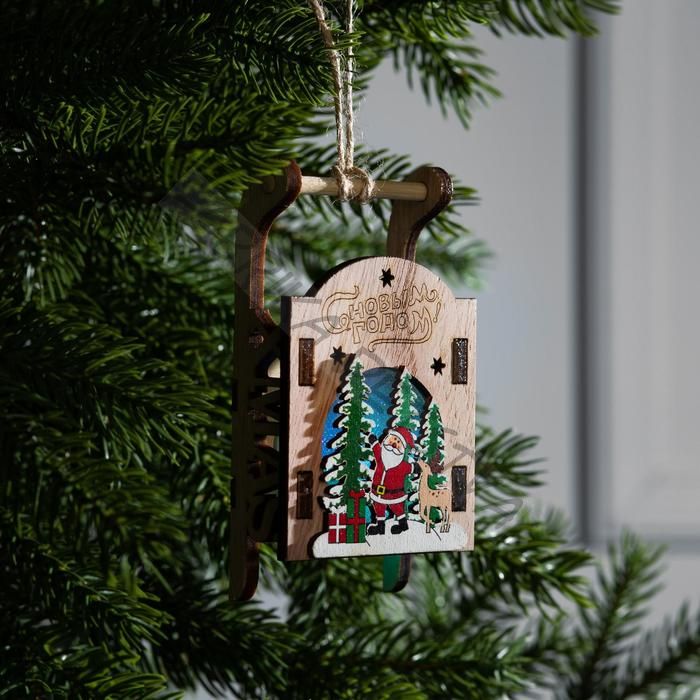 Ёлочная игрушка «Сани с Дедом Морозом», 6х12х4 см, от батареек, свечение RGB