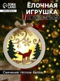 Ёлочная игрушка «Шар с лисёнком», 10х10х2 см, от батареек, свечение тёплое белое
