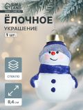 Ёлочная игрушка «Снеговичок в шапочке» ручная роспись, h=8.4 см, синий/белый