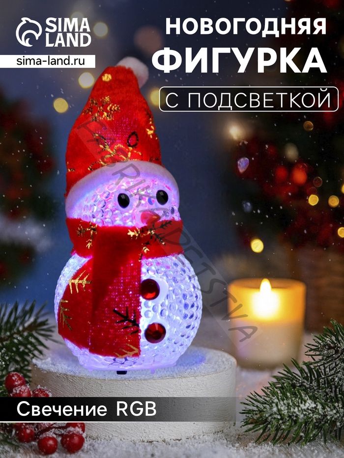 Ёлочная игрушка «Снеговик», 10 см, от батареек, свечение мульти (RGB)