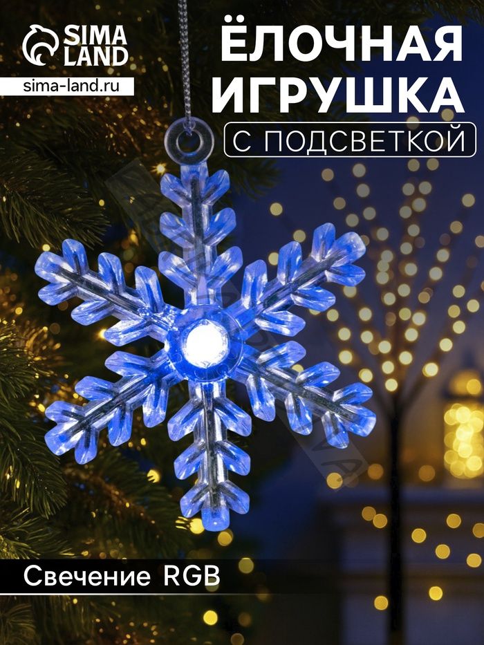 Ёлочная игрушка «Снежинка», 9х8.5х2.8 см, 1 LED, от батареек, свечение мульти (RGB)