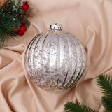 Ёлочная игрушка «Винтаж», шар новогодний, d=11.5 см, полосы, серебристый