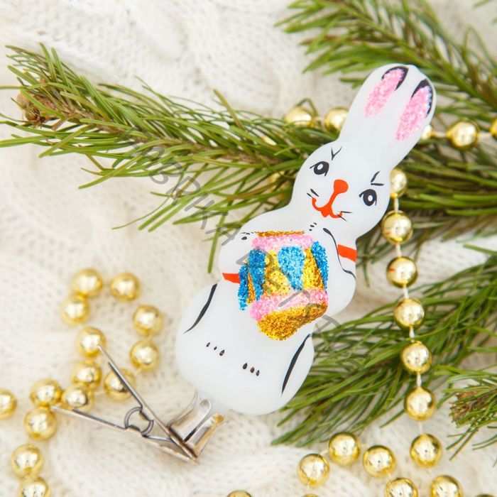 Ёлочная игрушка «Зайчик с барабаном» h=9.6 см