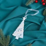 Ёлочная игрушка «Зимнее волшебство. Ёлка нарядная блестящая», 7x14 см, белый