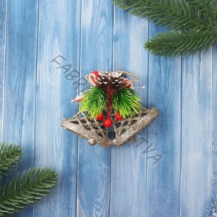 Ёлочная игрушка «Зимнее волшебство. Колокольчик блеск бантик» пластик, 8x10.5 см, золото
