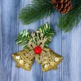 Ёлочная игрушка «Зимнее волшебство. Колокольчик двойной с цветком» пластик, 10x9 см, золото