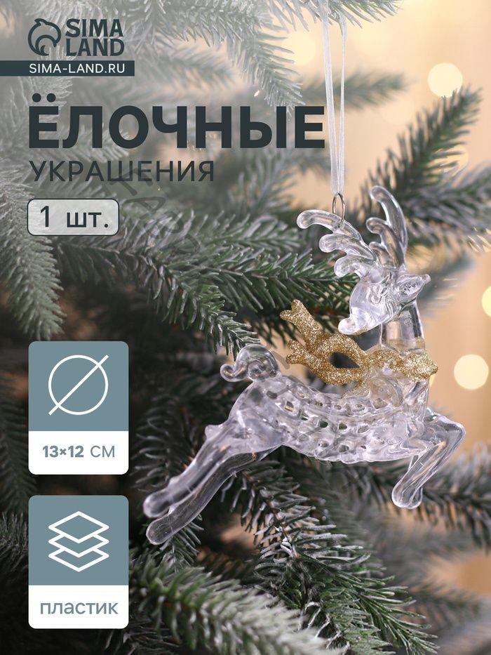 Ёлочная игрушка «Зимнее волшебство. Олень в прыжке с шарфом», 13x12 см, прозрачно-золотой