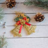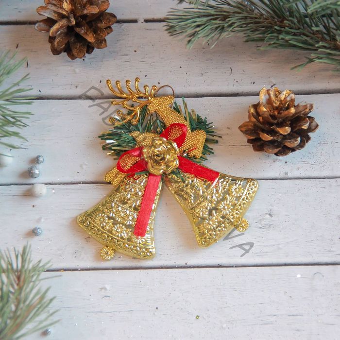 Ёлочная игрушка «Зимнее волшебство. Резные колокольчики с оленем» пластик, 10x9 см, золото