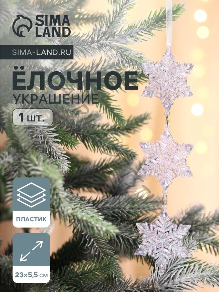 Ёлочная игрушка «Зимнее волшебство. Снежинка подвесная», 23x5.5 см, прозрачный перелив