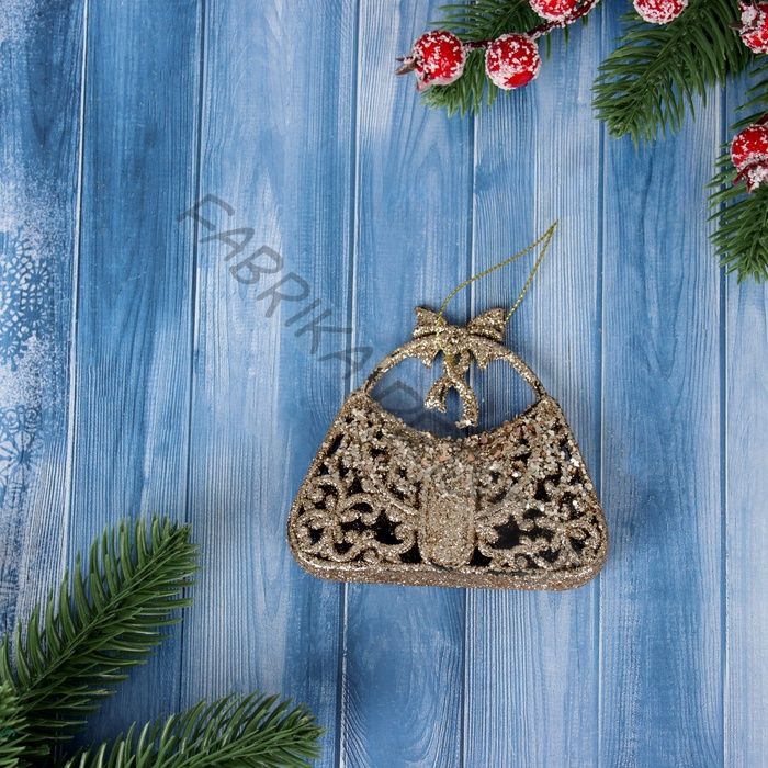 Ёлочная игрушка «Зимнее волшебство. Сумочка блеск» пластик, 8x9.5 см, золото