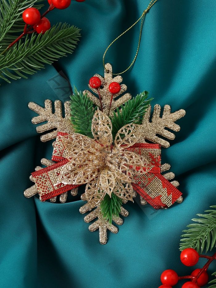 Ёлочная игрушка «Зимнее волшебство. Звезда с цветком и еловыми веточками», 15x13 см, золото