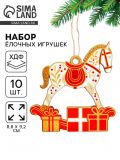 Ёлочная игрушка деревянная «Новогодний конь», набор 10 шт.