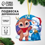 Ёлочная игрушка - подвеска деревянная «Новый год! Оленёнок»