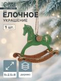 Ёлочное украшение новогоднее «Лошадка-качалка» 9x2.5x8 см, зелёное/дуб
