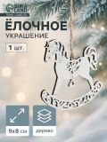 Ёлочное украшение новогоднее «Лошадка резная» 9x8 см, белое