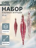 Ёлочные игрушка набор 6 шт. «Сосулька нить блеск» 15.5x3 см, розовый красный
