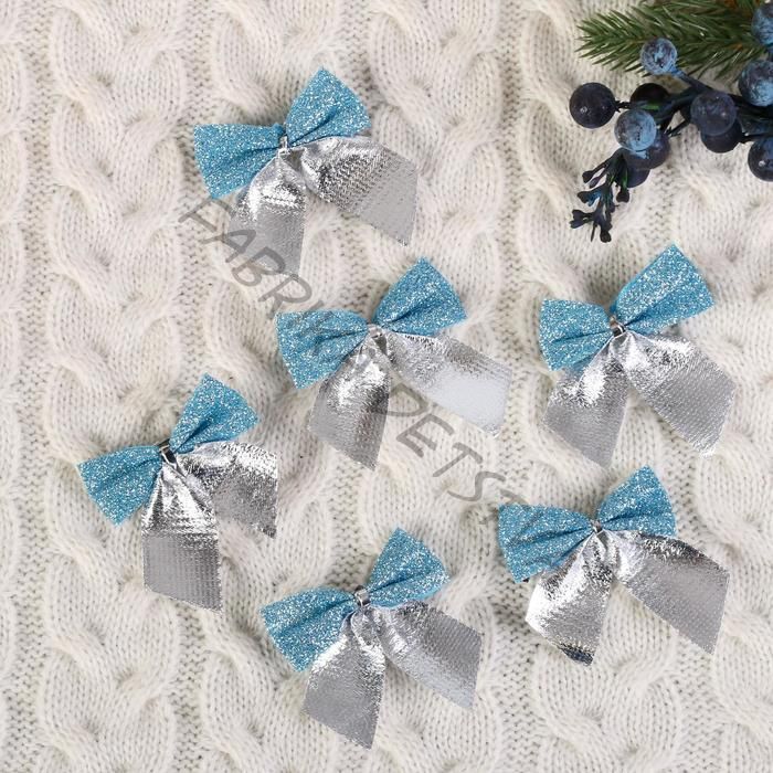 Ёлочные игрушки 12 шт. «Зимнее волшебство. Бант» пластик, 5.5x5 см, серебристо-голубой