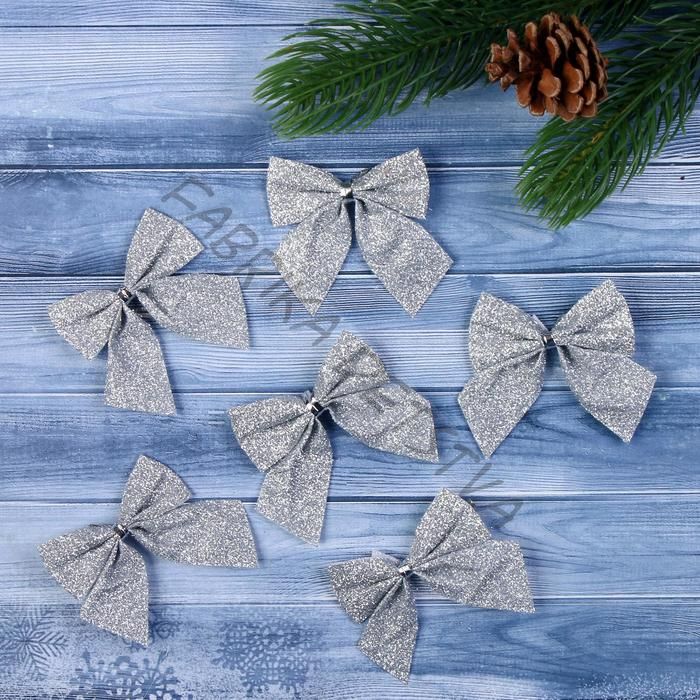 Ёлочные игрушки 12 шт. «Зимнее волшебство. Бантик - блеск» пластик, 4.5x5.5 см, серебро