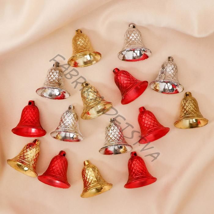 Ёлочные игрушки 12 шт. «Зимнее волшебство. Колокольчик в сеточку» пластик, 3x2.5 см, МИКС