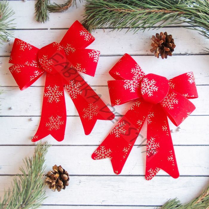 Ёлочные игрушки 2 шт. «Зимнее волшебство. Бант в снежинках» пластик, 14x16 см, красно-золотой