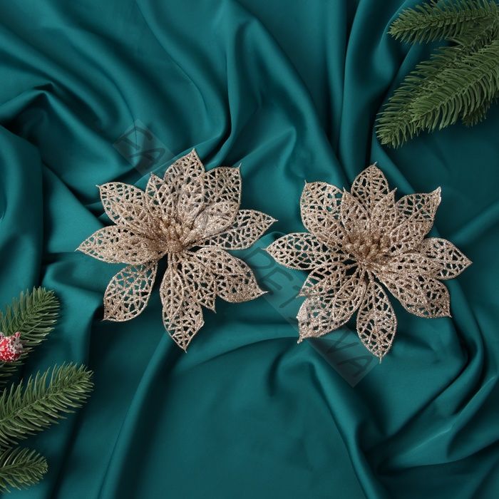 Ёлочные игрушки 2 шт. «Зимнее волшебство. Цветы сетка блеск», на зажимах, 13x13 см, золото