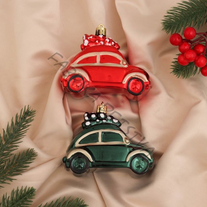 Ёлочные игрушки 2 шт. «Зимнее волшебство. Машинка колор» пластик, 9x5x7 см, зелёный, красный