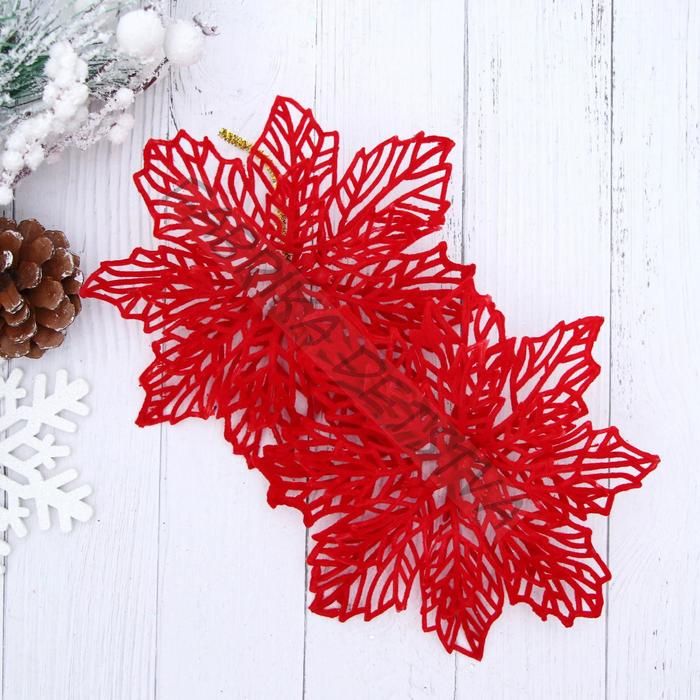 Ёлочные игрушки 2 шт. «Зимнее волшебство. Резной цветок» пластик, 8.5 см, красный