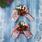 Ёлочные игрушки 2 шт. «Зимнее волшебство. Еловая композиция» пластик, бант с принтом, 13x12 см, бело-красный