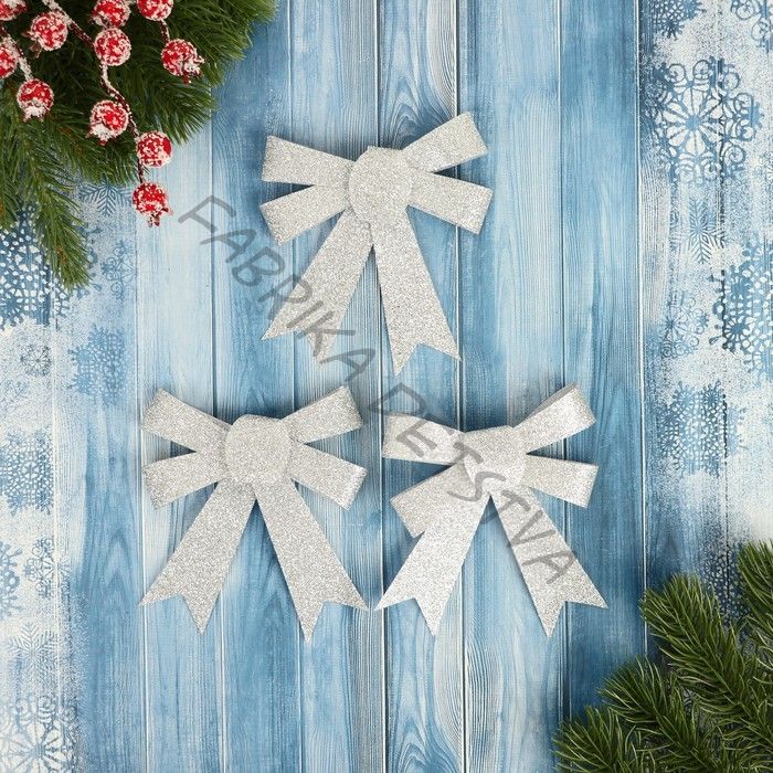 Ёлочные игрушки 3 шт. «Зимнее волшебство. Бант - блеск» пластик, 9x10 см, серебро