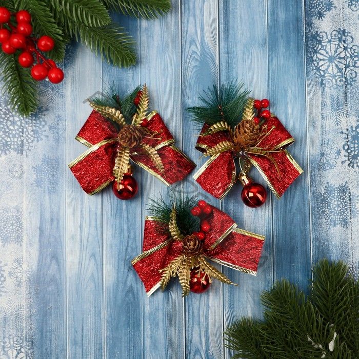 Ёлочные игрушки 3 шт. «Зимнее волшебство. Бант изыск» пластик, 10x7 см, красный