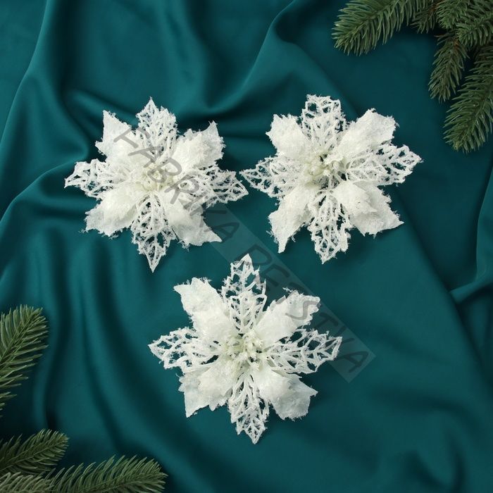 Ёлочные игрушки 3 шт. «Зимнее волшебство. Цветы заснеженные» пластик, резные, 10 см, белый