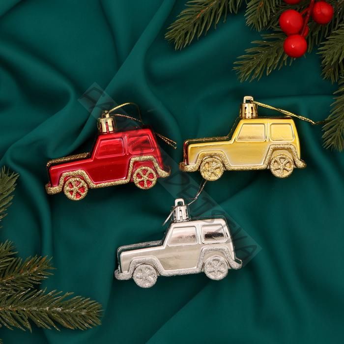 Ёлочные игрушки 3 шт. «Зимнее волшебство. Драйв» пластик, 7.5x3.5 см, МИКС