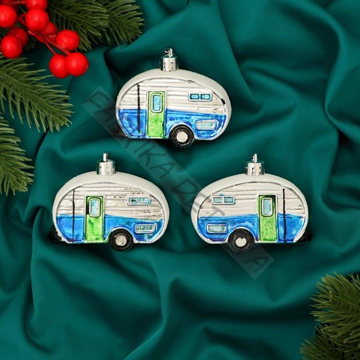 Ёлочные игрушки 3 шт., «Зимнее волшебство, Фургончики» пластик, 4x7 см, синий