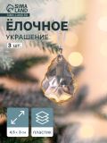 Ёлочные игрушки 3 шт. «Зимнее волшебство. Капля», 4.5x3 см, прозрачный с золотом