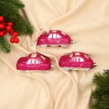 Ёлочные игрушки 3 шт., «Зимнее волшебство, Машинки» пластик, 9x3.5 см, розовый