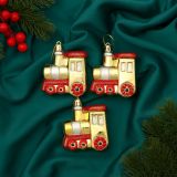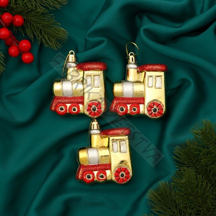 Ёлочные игрушки 3 шт. «Зимнее волшебство. Паровозик» пластик, 6.5x7 см, золото