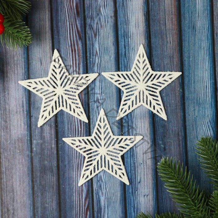 Ёлочные игрушки 3 шт. «Зимнее волшебство. Звезда в полоску люкс» пластик, 9x9 см, белый