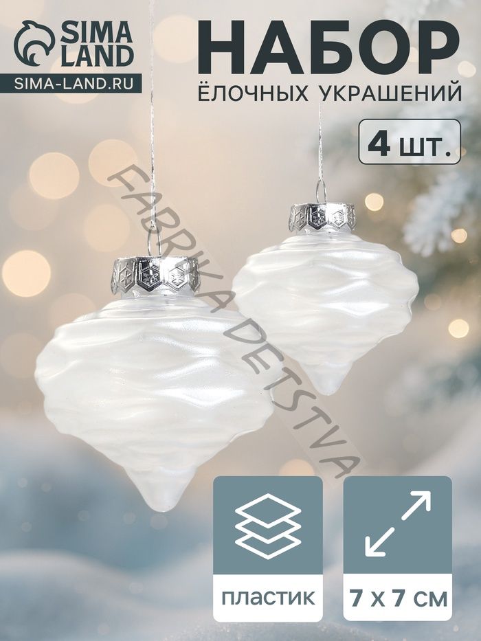 Ёлочные игрушки 4 шт. «Глория луковки волны» 7x7 см, белый
