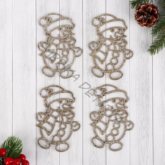 Ёлочные игрушки 4 шт. «Снеговик блестящий» 7x11 см, золото