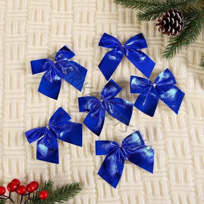Ёлочные игрушки 6 шт. «Зимнее волшебство. Бантик неон» пластик, 8x7 см, синий