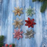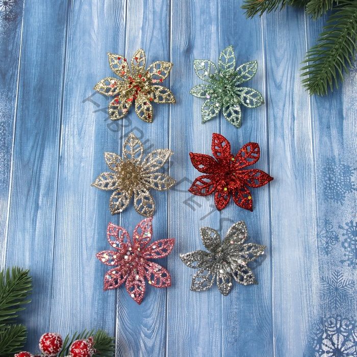 Ёлочные игрушки 6 шт. «Зимнее волшебство. Блестящие цветки» пластик, 6x6 см, МИКС