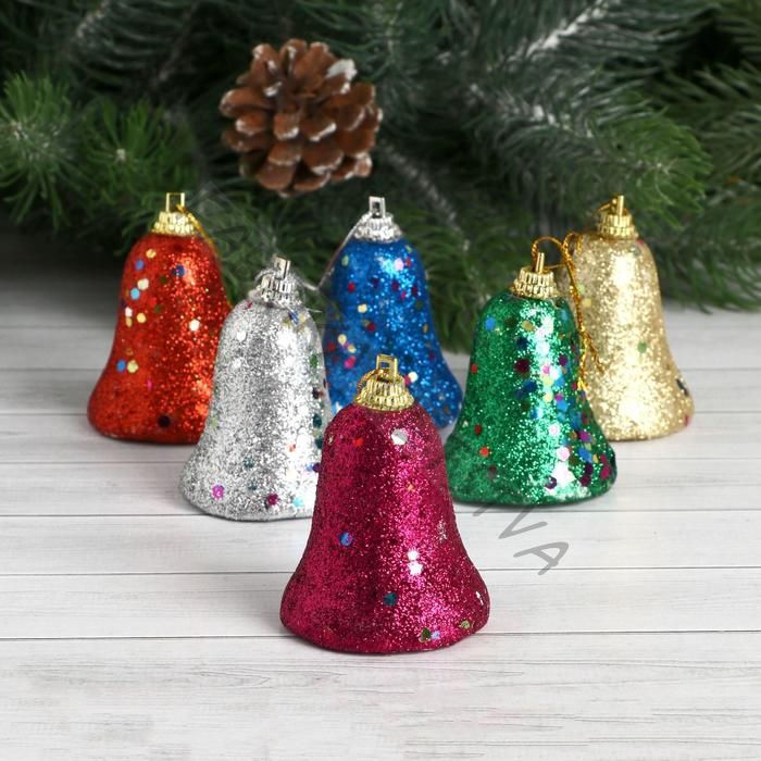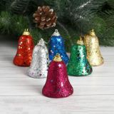 Ёлочные игрушки 6 шт. «Зимнее волшебство. Колокольчик в блёстках» пластик, 4.5x5.5 см, МИКС