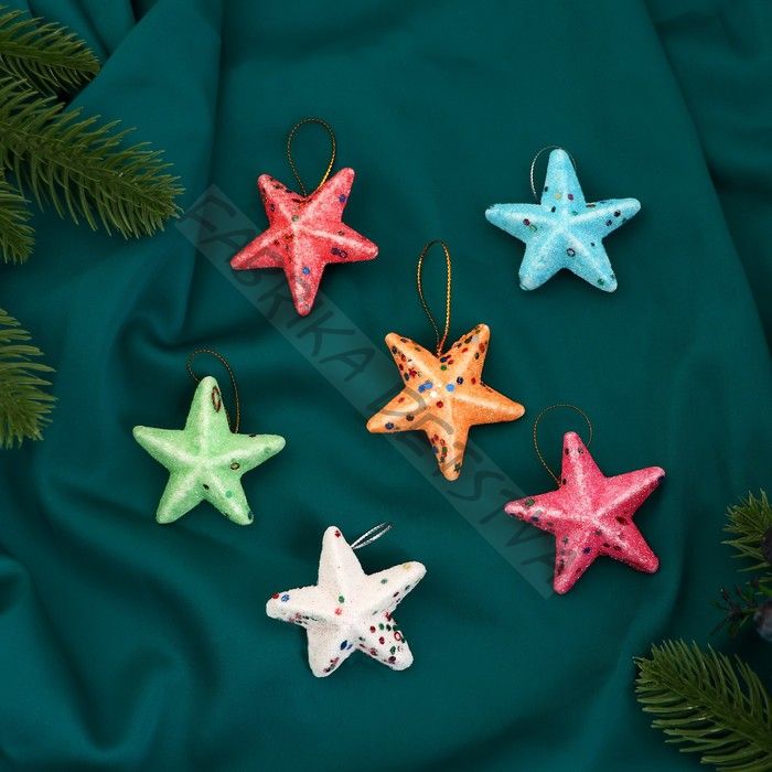 Ёлочные игрушки 6 шт. «Зимнее волшебство. Радужные звёзды - магия» пластик, 5 см, МИКС