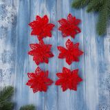 Ёлочные игрушки 6 шт. «Зимнее волшебство. Резной цветок» пластик, 7 см, красный
