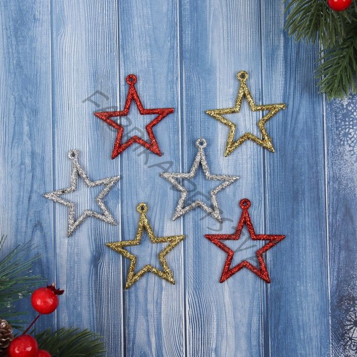 Ёлочные игрушки 6 шт. «Зимнее волшебство. Звезда блеск грация» пластик, 5x4.5 см, МИКС